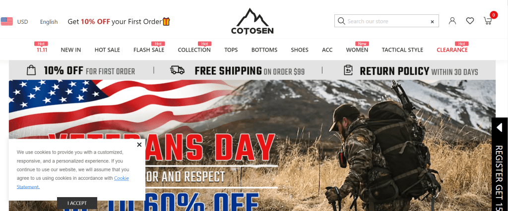 Cotosen is an international clothing e-commerce company that focuses on providing tops, pants, accessories, shoes, bags and other items for tactics and outdoor sports around the world.