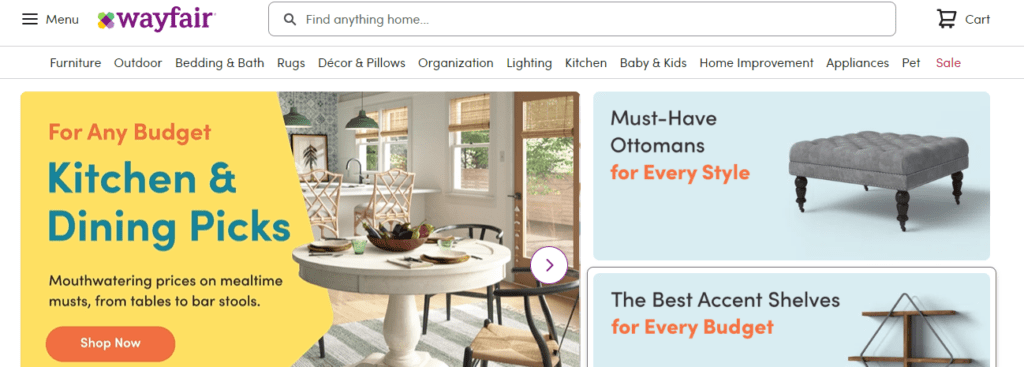 Wayfair is a well-organized, convenient, and affordable shopping experience